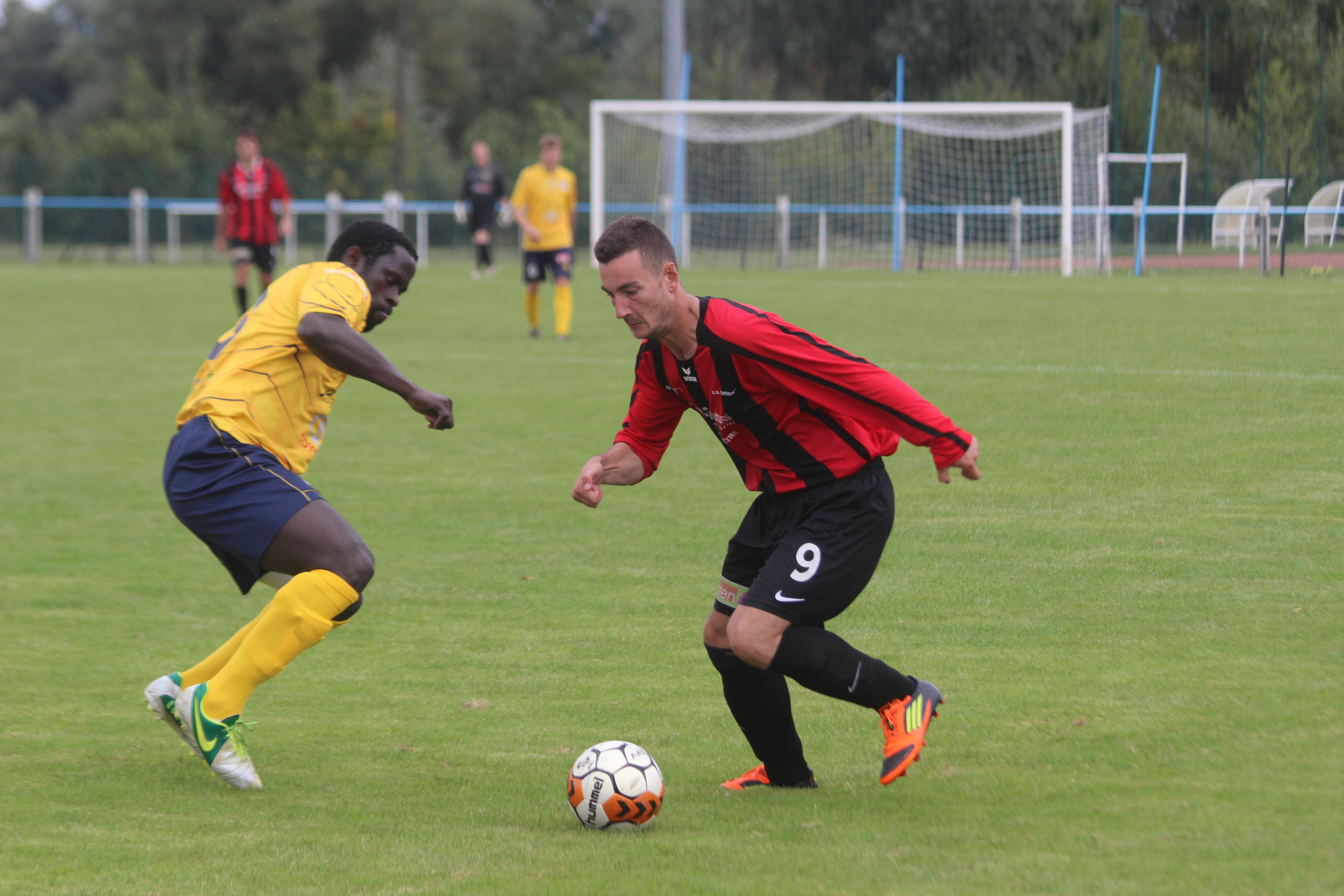 faouzi frappe et but met le ballon roule comme un escargot et le visage remplie de boue